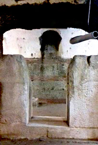 In realtà l’ingresso del caveau era protetto ulteriormente da una grata o una saracinesca metallica in scorrimento verticale come testimoniato dagli incavi di alloggiamento perfettamente visibili ai lati dell’apertura.